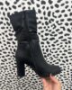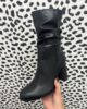 The perfect boot for dressing up or down has arrived. Calf length black pu leather featuring ruched detailing, approx two inch block heel and side zip fastening.
