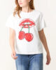 New season white round neckline tee with cap sleeves featuring embellished lips & cheery to front.
