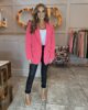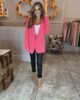 Tailored One Button Oversized Blazer in fuchsia. Featuring button sleeve detailing and mock pockets.