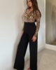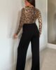Indulge in luxury with our stunning Leopard Sequin Mock Wrap Front Jumpsuit. This stunning one-piece boasts a sequined leopard print, crafted from premium sculpting jersey to enhance your curves. The wide leg silhouette creates an elongating effect for a truly elegant look and it even has pockets.