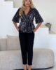 Elevate your wardrobe with our sophisticated navy & gold top. The delicate white fabric is accented with shimmering gold detailing, making it the perfect statement piece for both day and night. Indulge in luxury with this elegant and exclusive top.