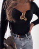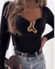 Crafted with a soft, stretchy finish, the Karla top features a sweetheart-inspired necklineenhanced with a unique gold jewellery twist accent — creating a lifted, sculpted effect across the bust. Subtle built-in cup shaping adds structure, while the long fitted sleeves provide a sleek, balanced silhouette.