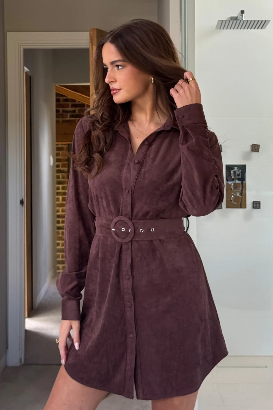 Suede is bang on trend this season & our new in belted shirt dress ticks all the boxes.