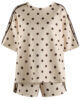 Available in black, beige & cream. Top features a round neckline with a relaxed fit. Shorts featuring an elasticated waistband with self tie best fitting size 8 to 12