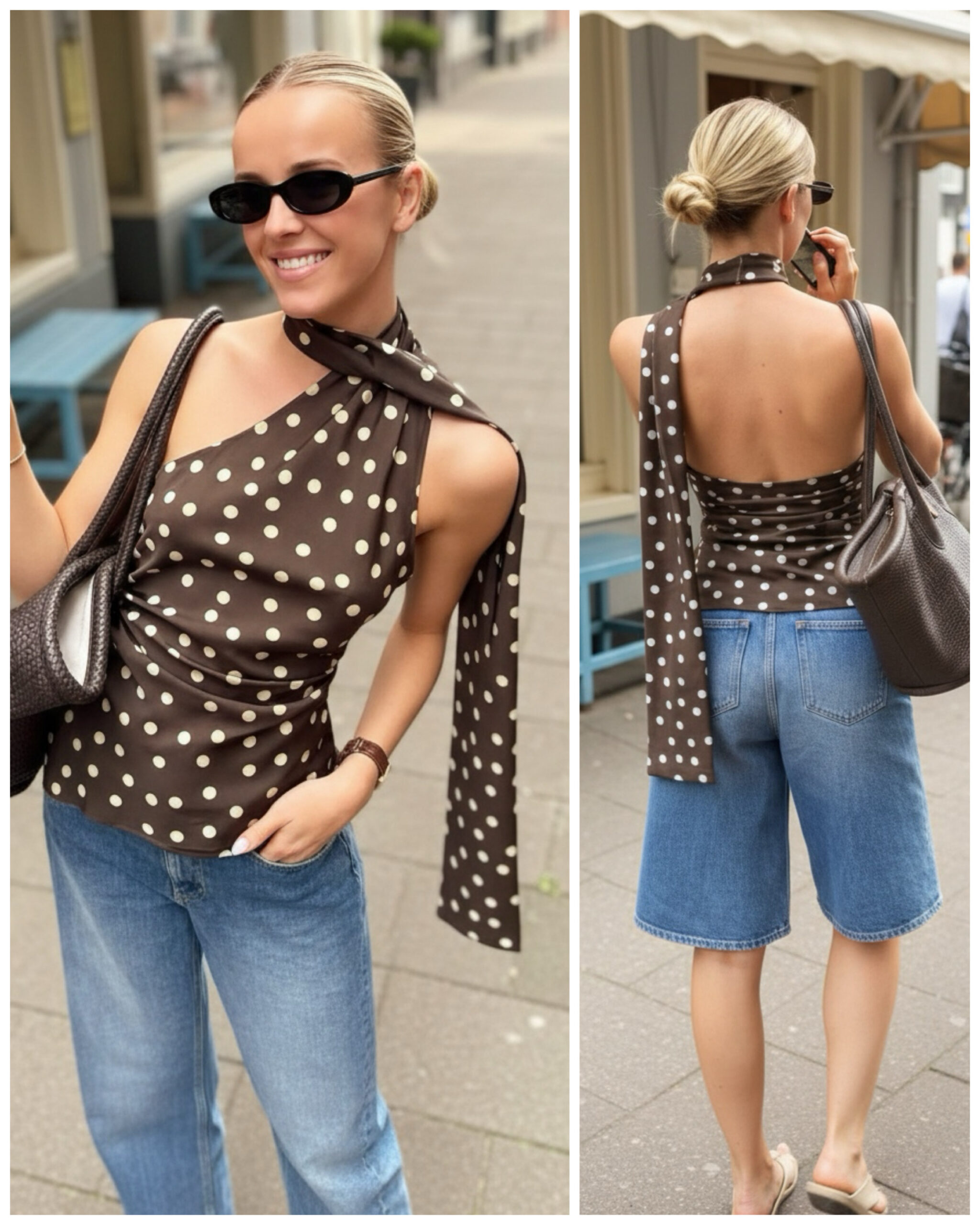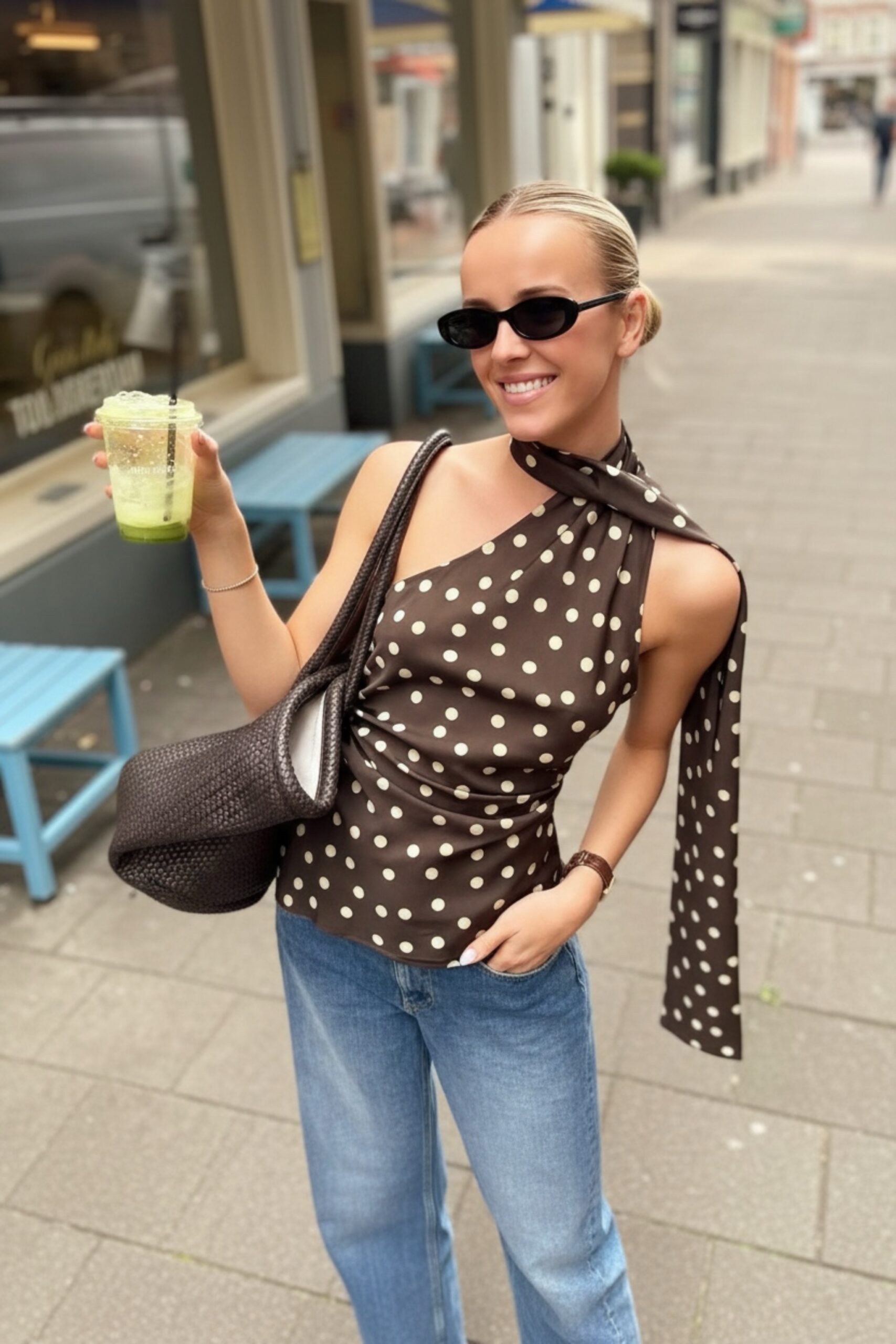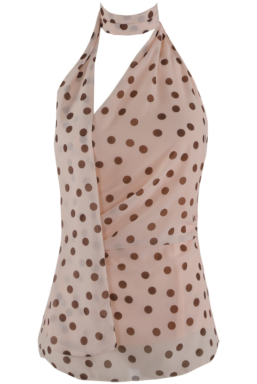 New season polka dot halter neck tops available in chocolate, white & beige.