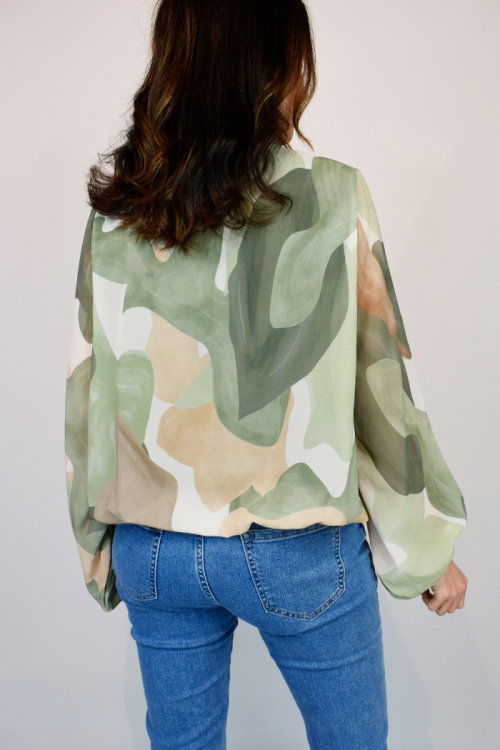 New season abstract pastel colour mix blouse featuring bubble hem, fully lined & all over print. Perfect teamed with trousers or jeans.