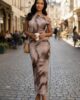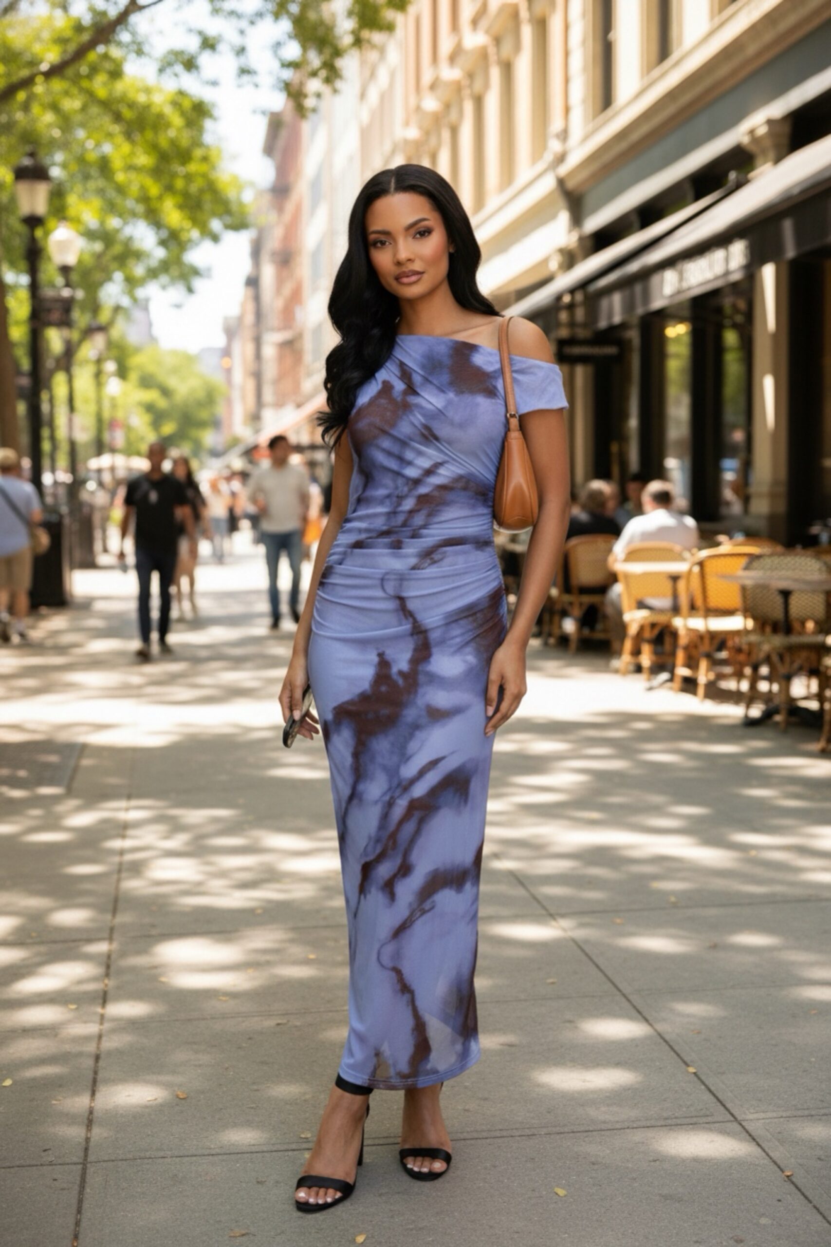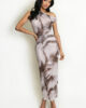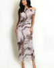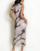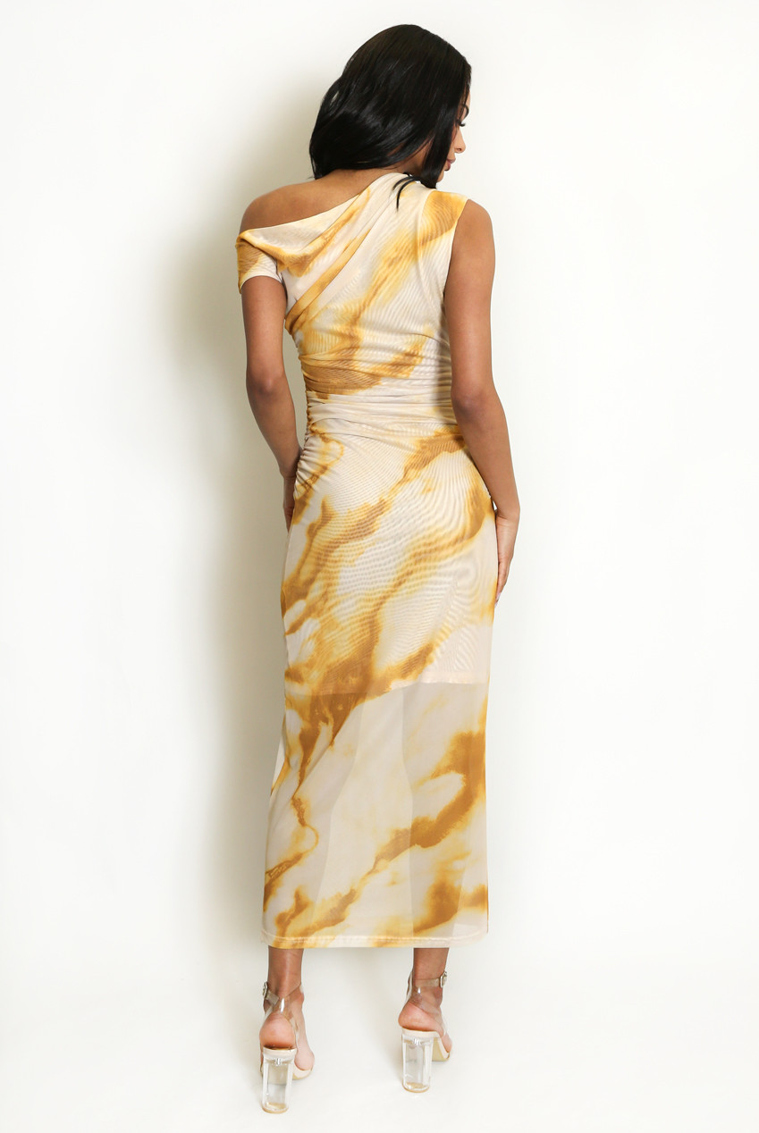 New season chiffon marble detailed midi dress featuring half lining, one shoulder detailing and all over print.