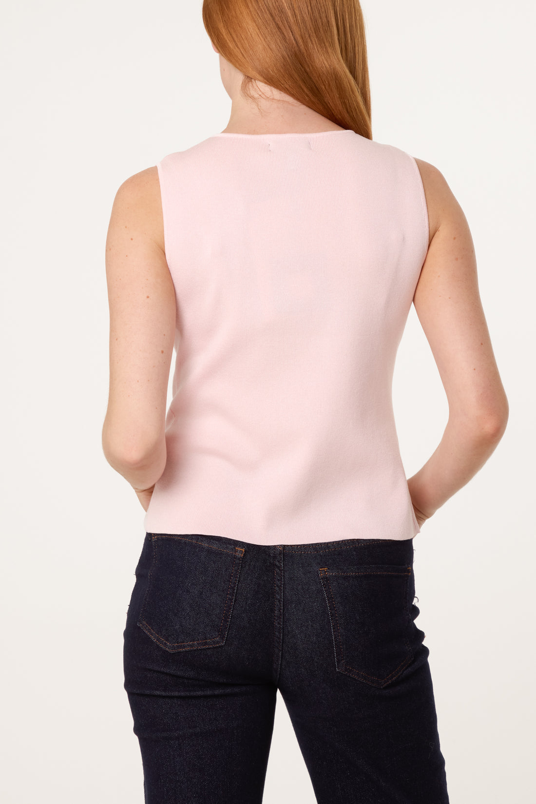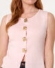 New season pink vest top featuring gold button fastening. Perfect teamed with jeans for a day to night look.