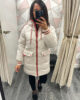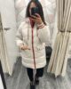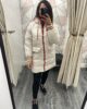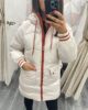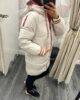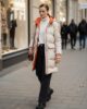 The perfect jacket for adding layers, keeping cosy and bang on trend. Beige puffer jacket featuring orange detailing to pockets, cuffs and hood. Zip front fastening & pockets to front.